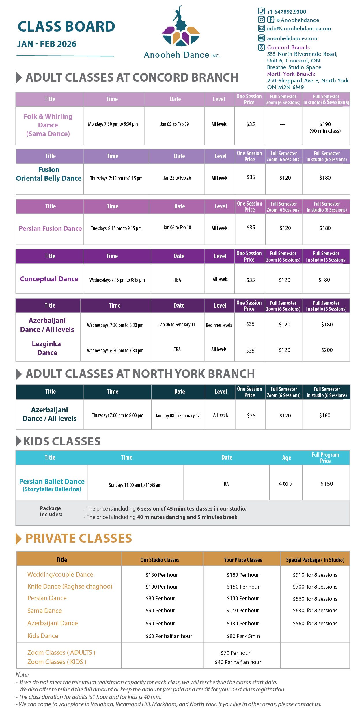 We understand that dance and music transcend language barriers, and while our primary language is Farsi, we accommodate attendees who may not be fluent in the language by providing instruction in English as well. Our top priority is to ensure that everyone in our classes is having a great time!